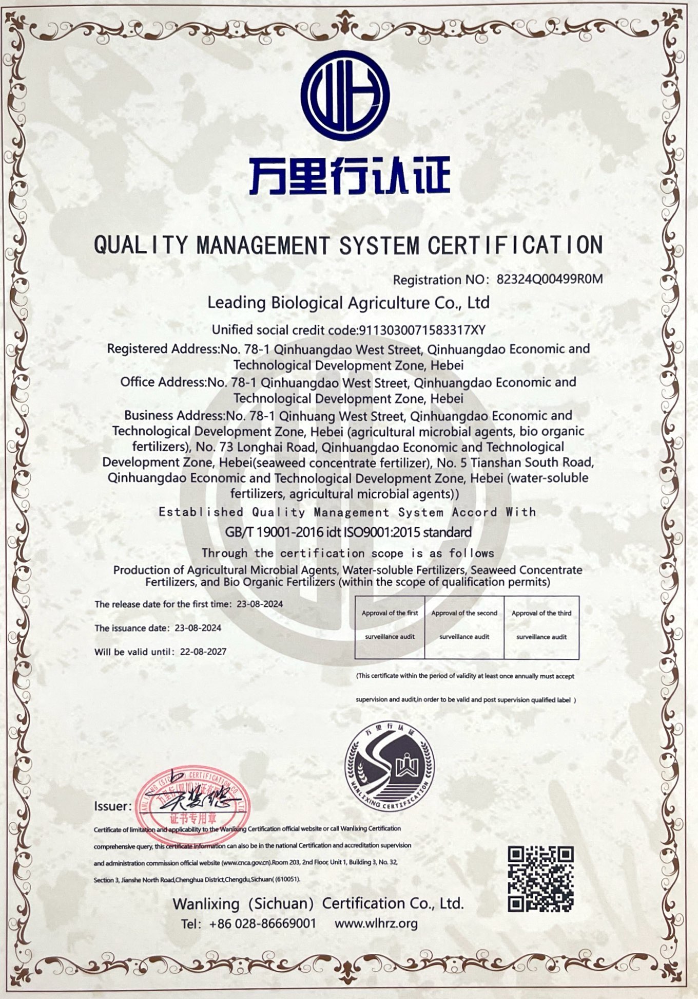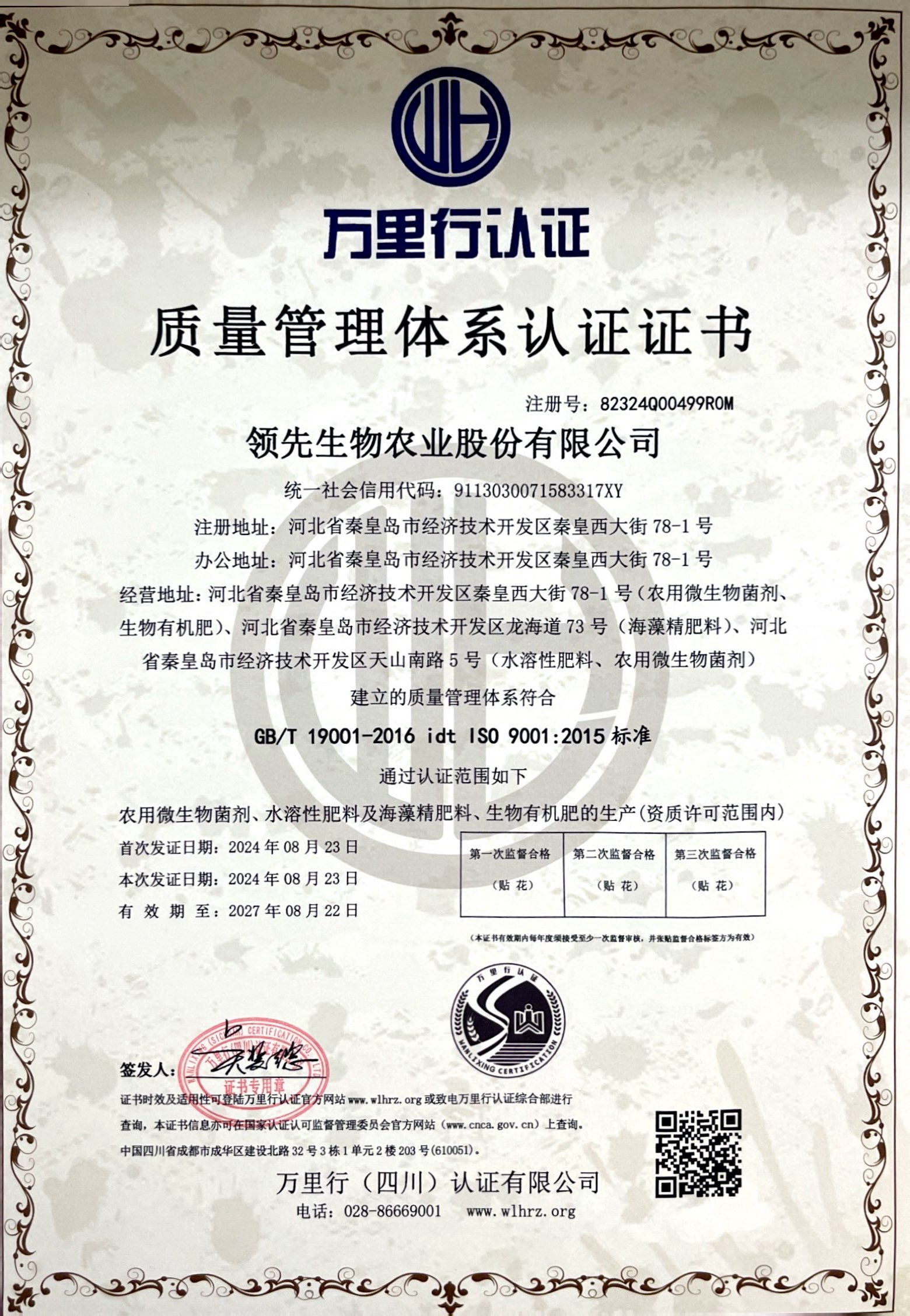 質(zhì)量管理體系認證證書