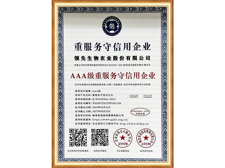 AAA級重服務(wù)守信用企業(yè)